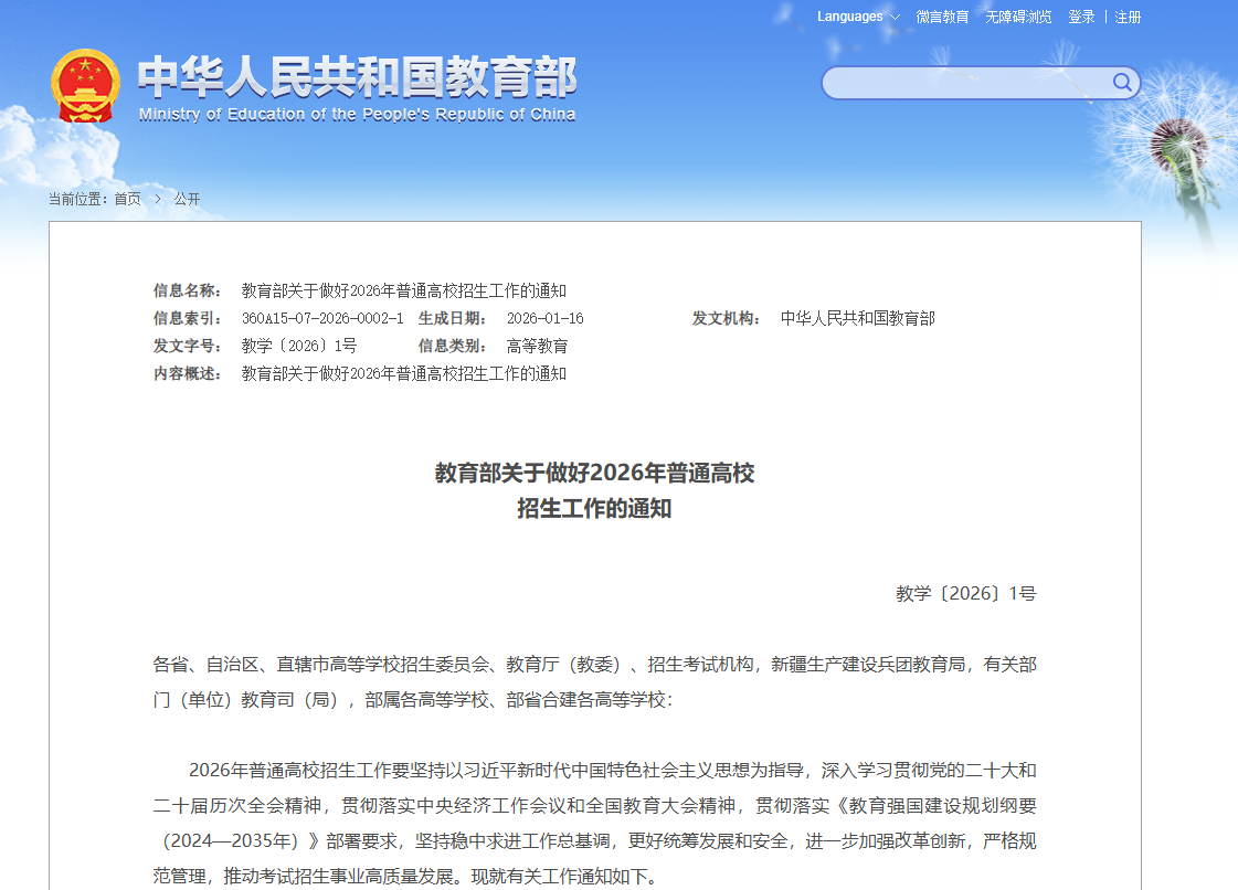 2026年全国高考定了,将于6月7日-8日开考,一般来讲,广东高考会考到6月9日。在教育部今年的高考招生工作文件里对对配,藏着不少和考生报考相关的利好,直接关系到后续志愿填报和专业录取。