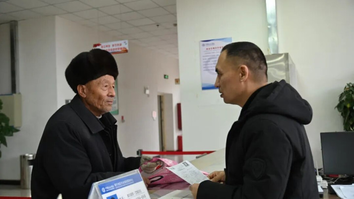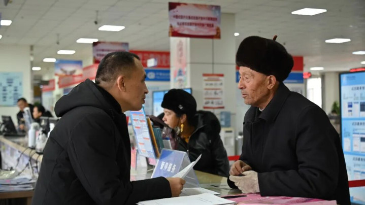 在喀什地区社会保险服务中心服务大厅海顺优配,工作人员给群众办理相关业务。喀什地区融媒体中心记者张吾乐摄